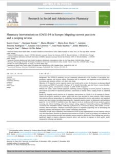 Costa, S., Romão, M., Mendes, M., Horta, M. R., Rodrigues, A. T., Carneiro, A. V., Martins, A. P., Mallarini, E., Naci, H., & Babar, Z.-U.-D. Pharmacy interventions on COVID-19 in Europe: Mapping current practices and a scoping review. Research in Social and Administrative Pharmacy. 2021; 18(8), 3338–3349. doi: 10.1016/j.sapharm.2021.12.003