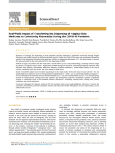 Título traduzido: Impacto no mundo real da transferência da dispensa de medicamentos exclusivamente hospitalares para as farmácias comunitárias durante a pandemia de COVID-19